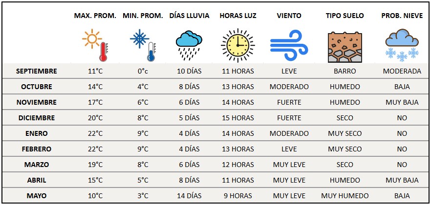 Aprende más sobre las condiciones del suelo y el clima para andar en bicicleta en Bariloche día a día, durante los 12 meses del año. Travesías, circuitos y excursiones recomendadas en primavera (octubre y noviembre), en verano (diciembre, enero y febrero), en otoño (marzo, abril y mayo), y en invierno (junio, julio, agosto y septiembre).